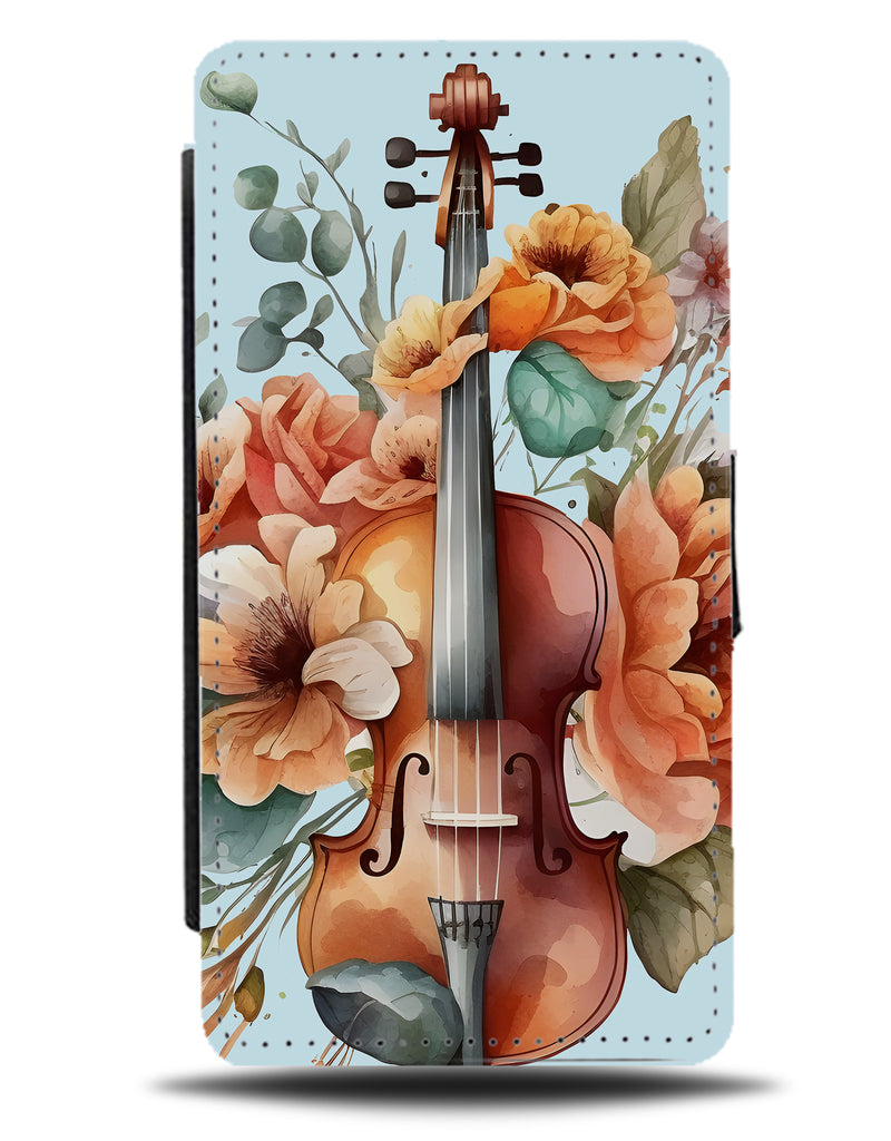 Violin In Flowers Design Flip Wallet Phone Case Flower Violins Instrument Gift BH87