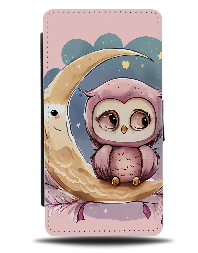 Vintage Owl On The Half Moon Flip Wallet Phone Case A Moons Shape Night Sky Owls BJ74