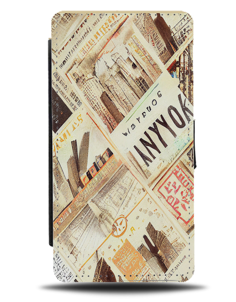 Vintage New York Newspaper Flip Wallet Phone Case Newspapers Old Photographs BR23