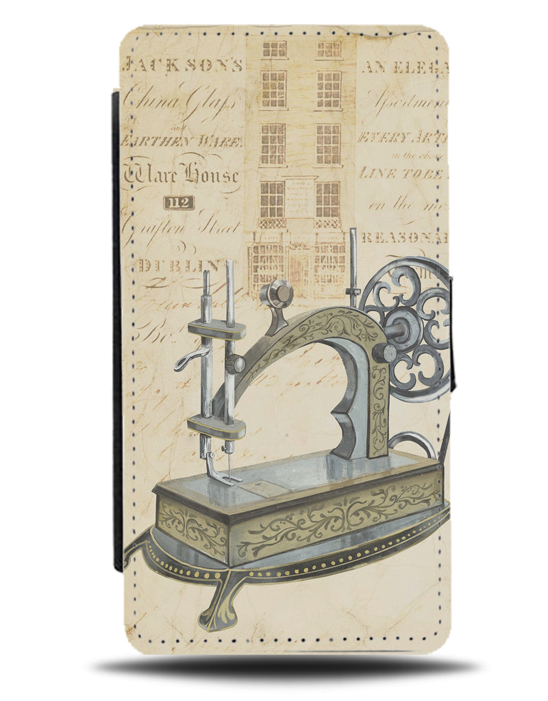 Vintage Sewing Machine Scrapbook Design Flip Wallet Phone Case Old Fashioned BV69