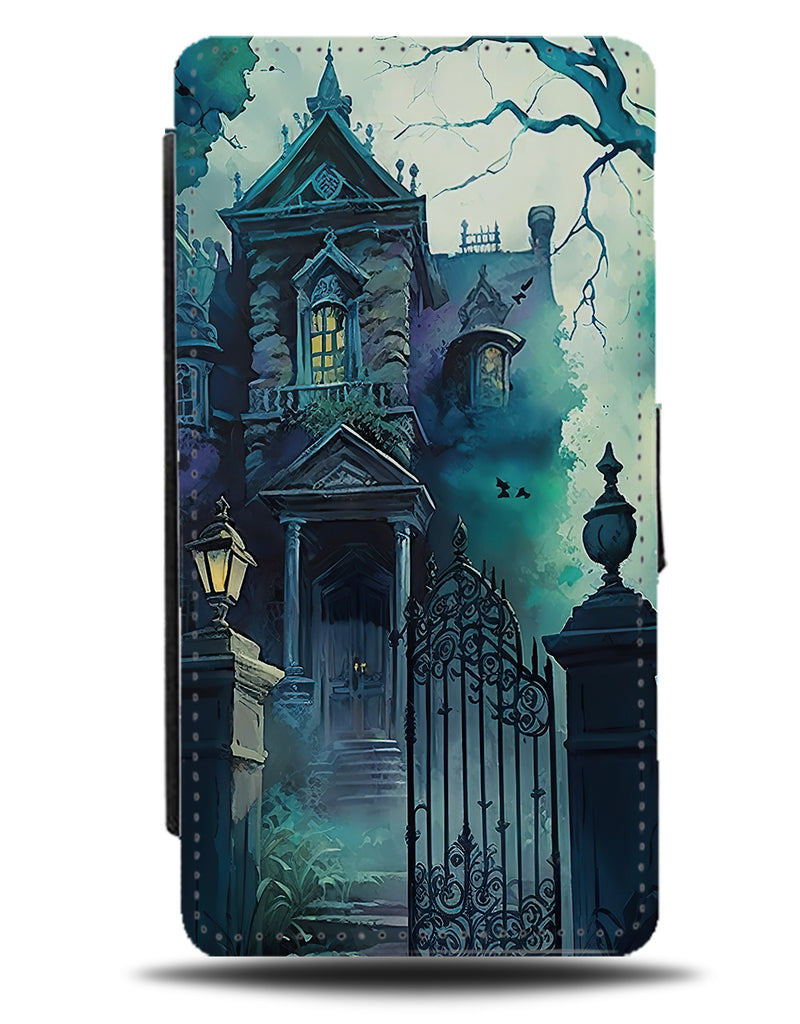 Watercolor Haunted House Flip Wallet Phone Case Creepy Scary Horror Halloween BW14
