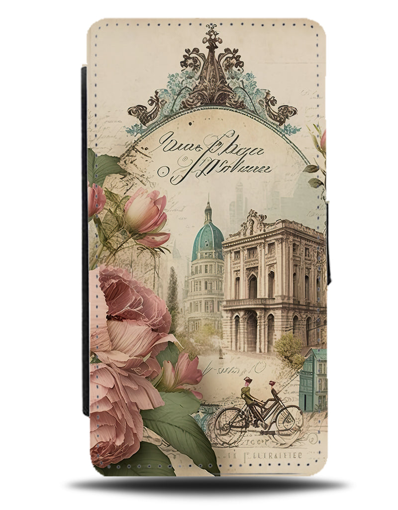 Vintage French Scenery Flip Wallet Phone Case Style France Scrapbook Old Looking BW38