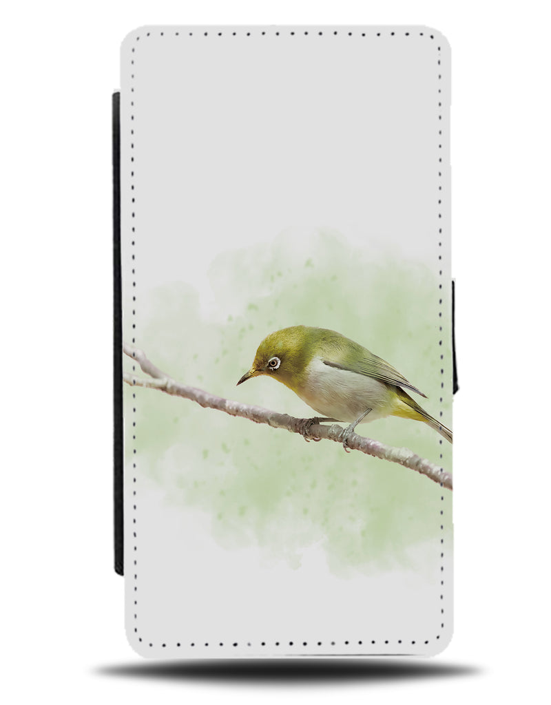 Watercolour Green Bird On Branch Flip Wallet Phone Case Branches Birds Exotic Q446U