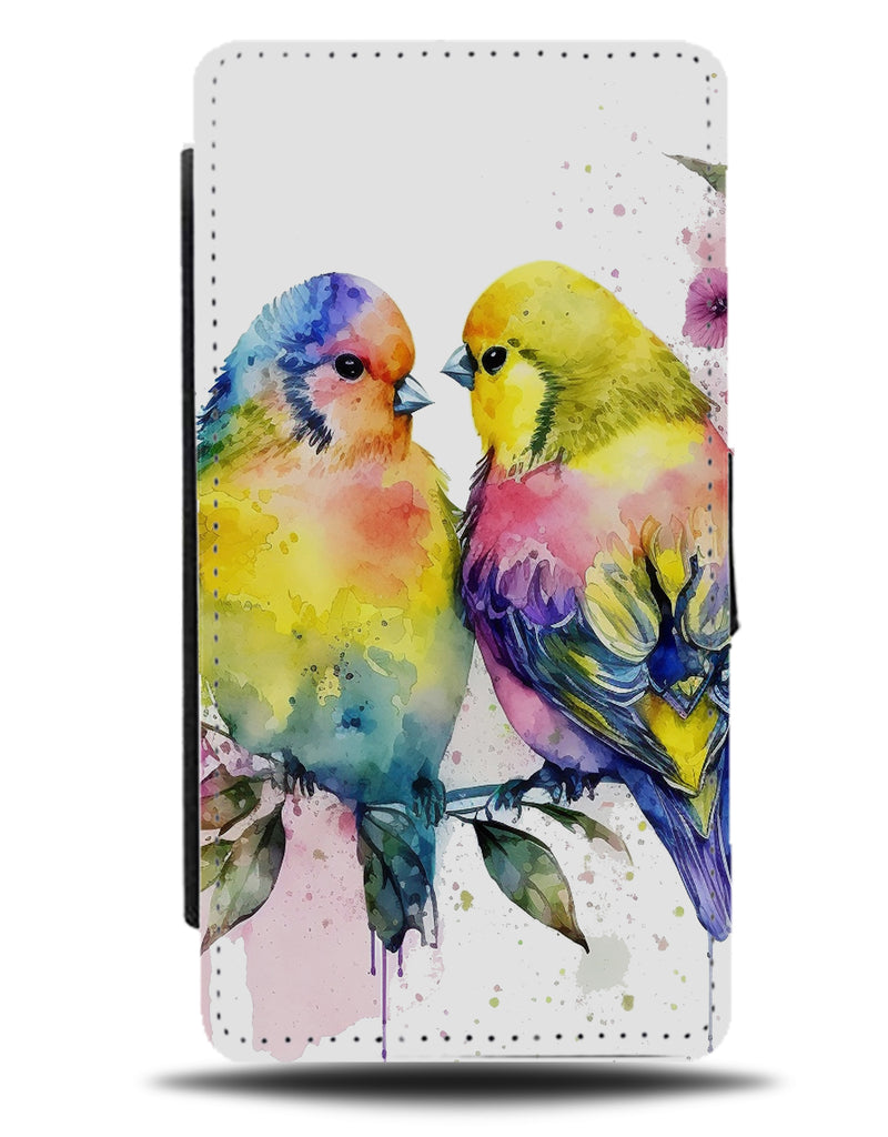 Watercolour Budgies Flip Wallet Phone Case Artwork Budgie Bird Birds Exotic Q537A