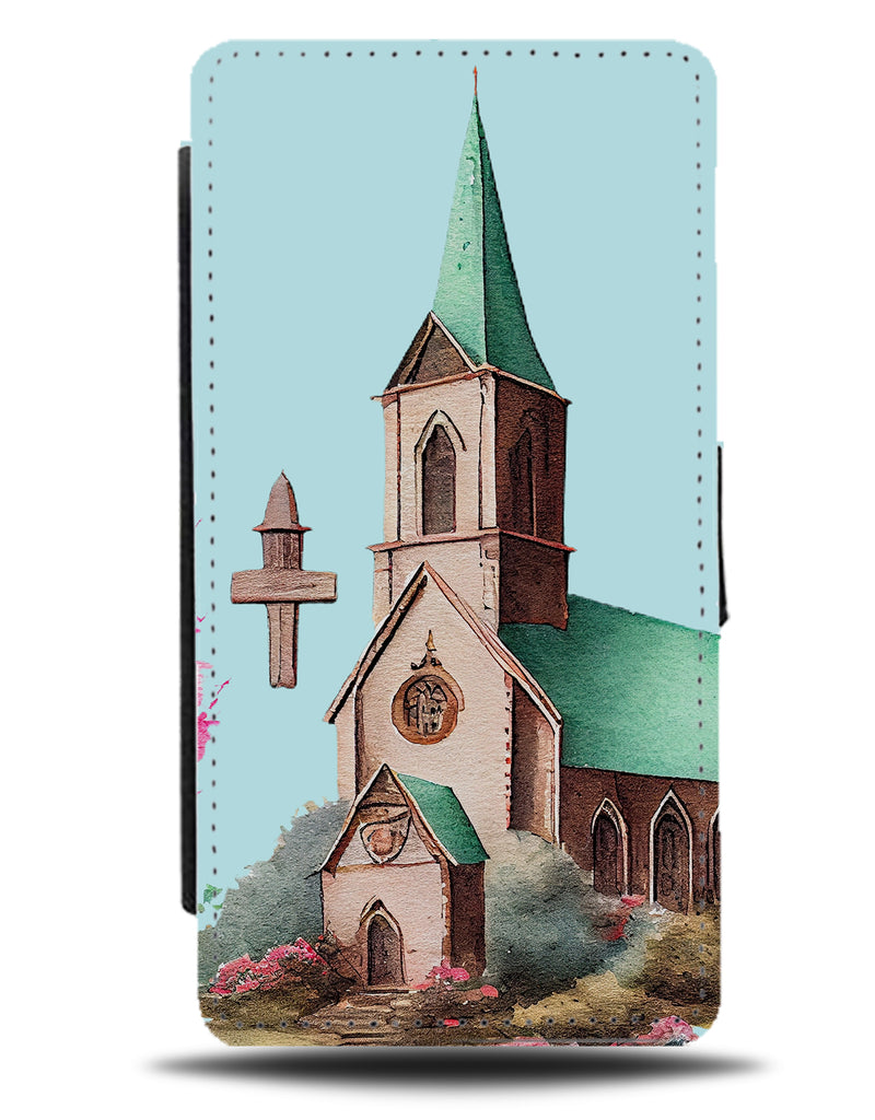 Watercolour Church Building Picture Flip Wallet Phone Case Churches Church's Q585