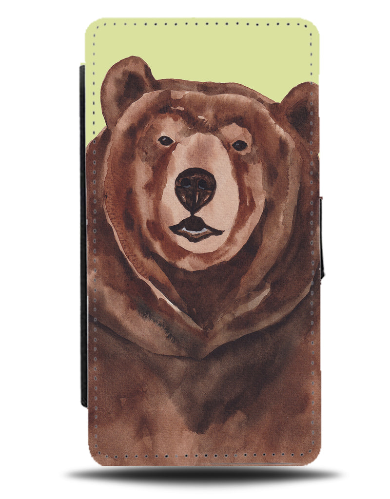 Watercolour Grizzly Bear Flip Wallet Phone Case Bears Painting Face Animal Brown Q724B