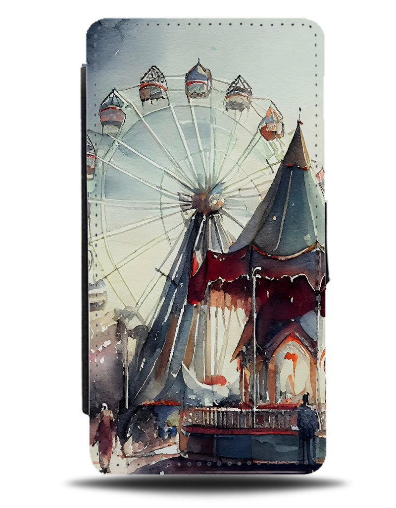 Vintage Watercolour Ferris Wheel Painting Print Flip Wallet Phone Case Ride Fun Q780B