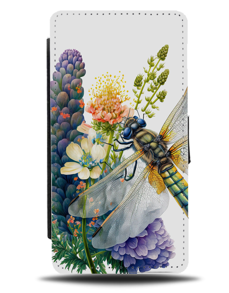 Watercolour Dragonfly On Flower Flip Wallet Phone Case Dragon Fly Wings Spring Q873C