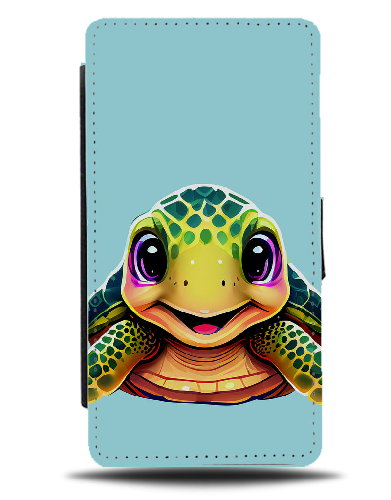 Turtle In Flower Crown Flip Wallet Phone Case Turtles Face Watercolour Painting BJ34
