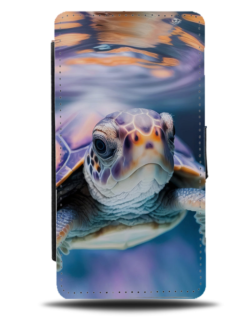 Underwater Swimming Turtle Flip Wallet Phone Case Turtles Face Sea Under Water BV36
