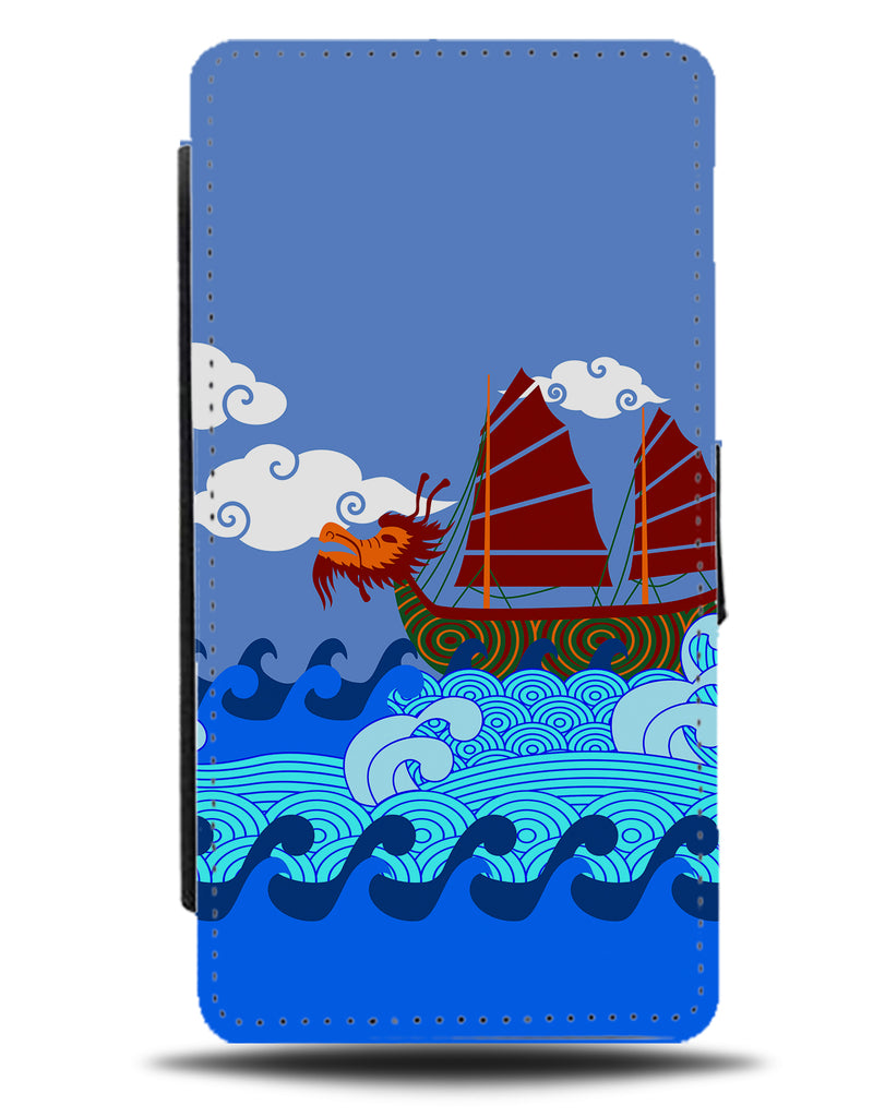 Vikings Boat Flip Wallet Phone Case Viking Chinese Dragon Style Look Theme Face BV45