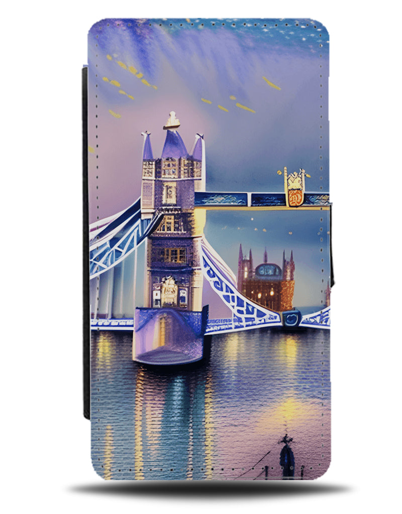 Tower Bridge Artwork Print Flip Wallet Phone Case London River Thames UK Painting LP60
