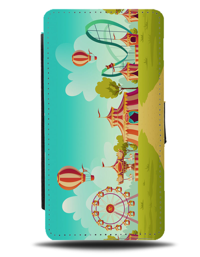 Vintage Cartoon Theme Park Flip Wallet Phone Case Amusement Rides Ride Carnival Q569