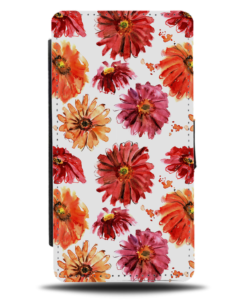 Vintage Floral Gerbera Chrysanthemum Flowers Flip Wallet Phone Case Pink Orange Q694C