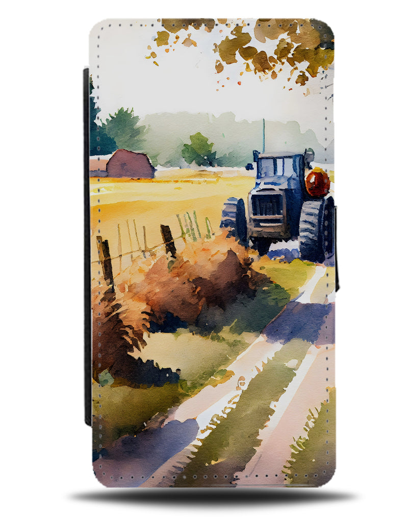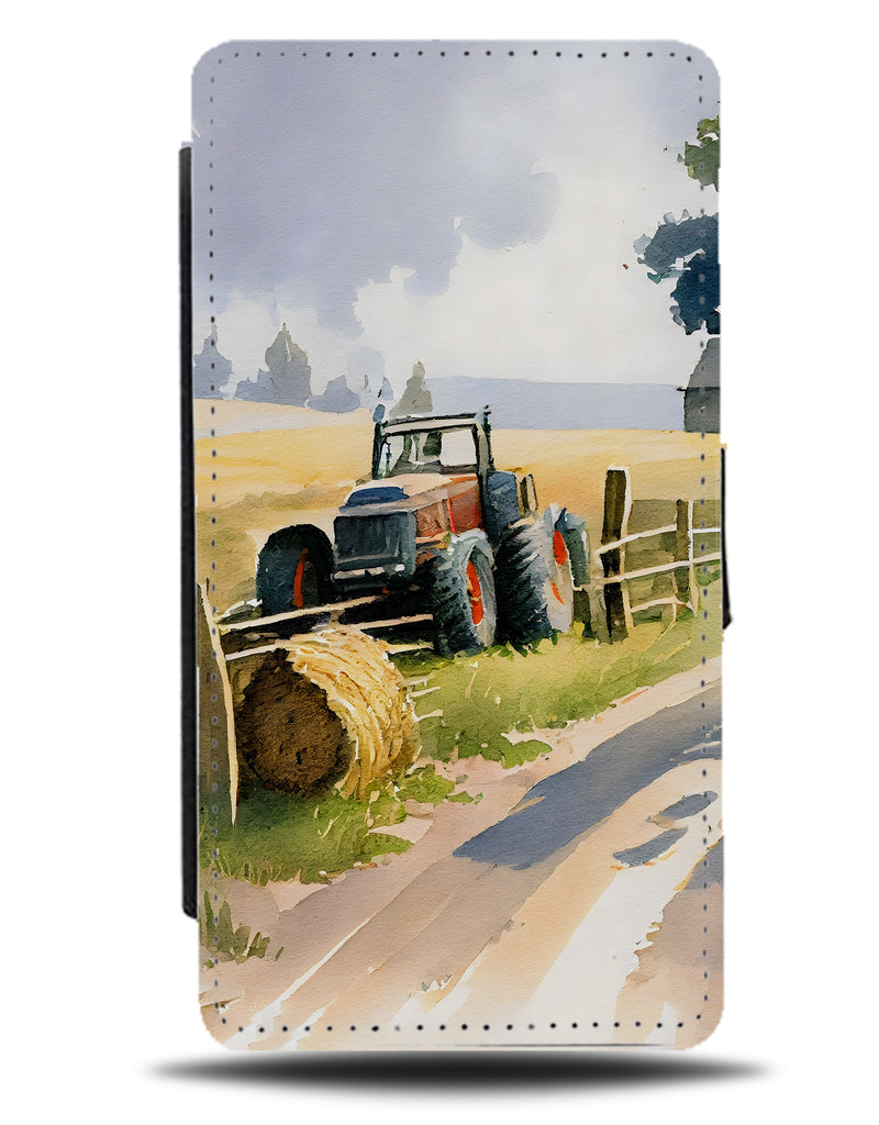 Tractor In The Field Flip Wallet Phone Case Hay Bale Farm Watercolour Painting Q787C