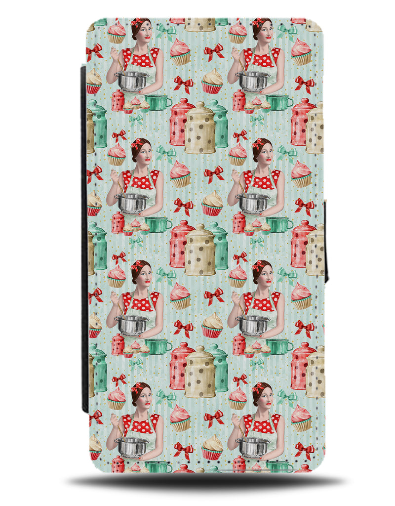 Vintage American Housewife Pattern Flip Wallet Phone Case Housewives 60s Pin Up Q812A