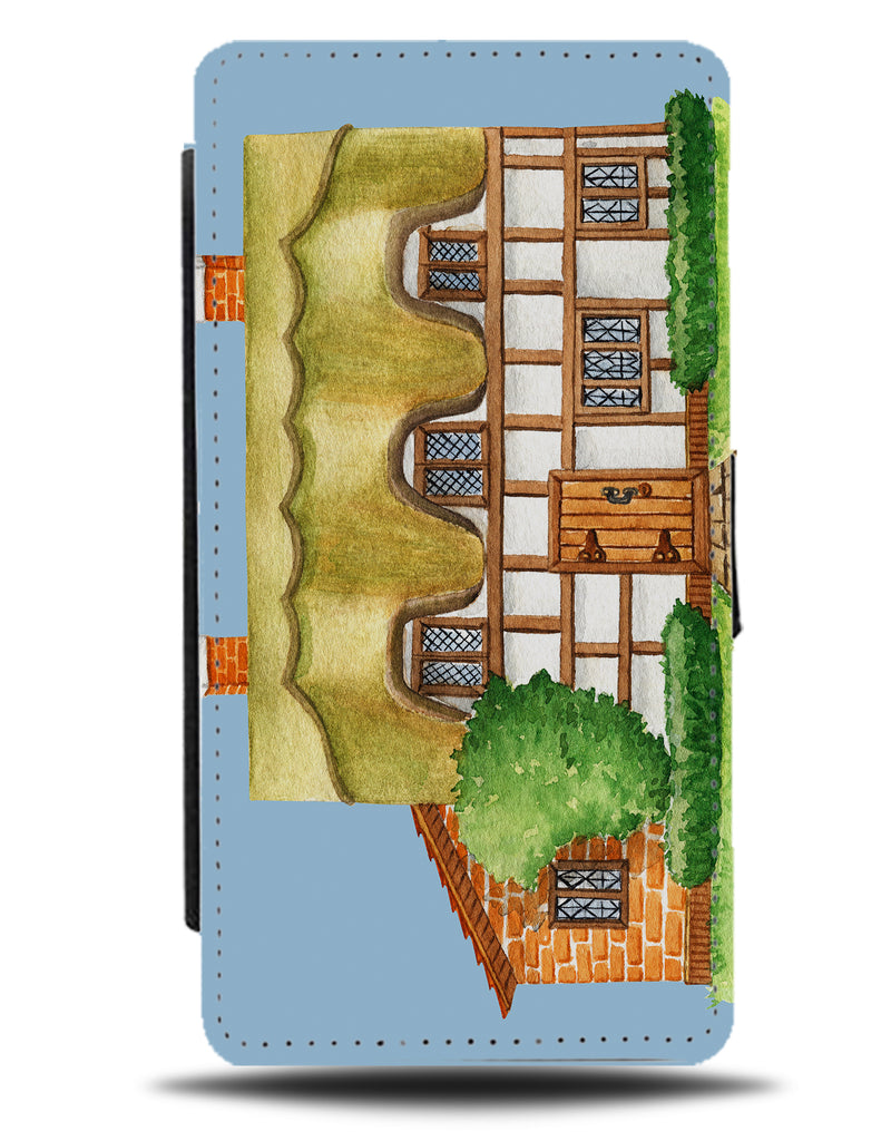 Traditional Village House Building Flip Wallet Phone Case Home Villages Style Q911E