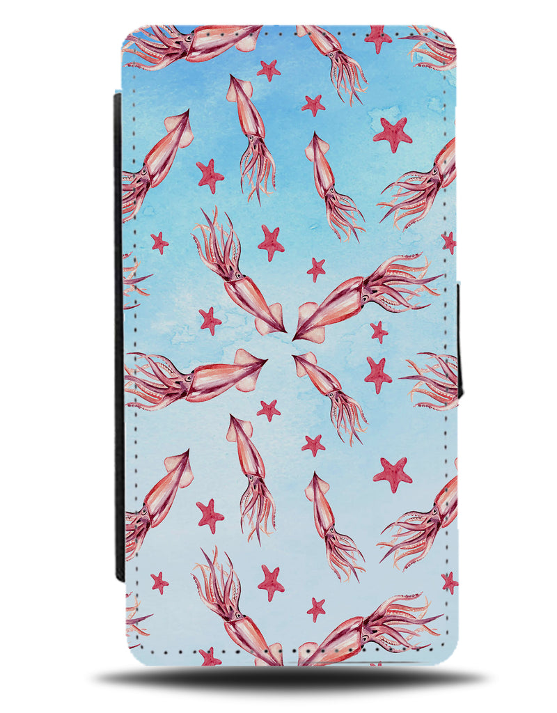 Swimming Squids Flip Wallet Phone Case Squid Pink Shapes Shape Fish Watercolour BP54