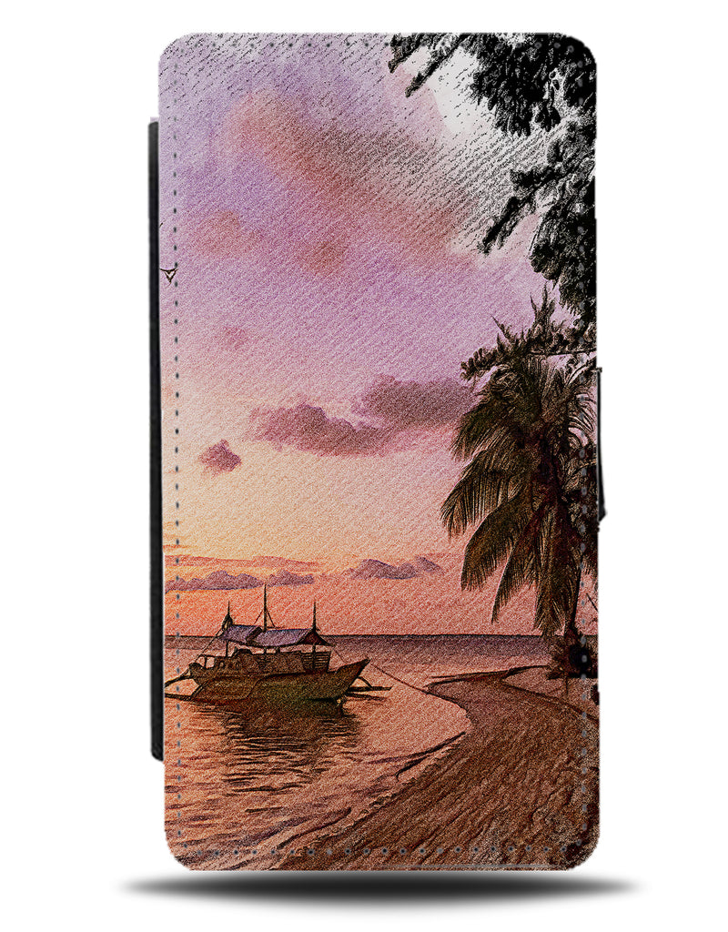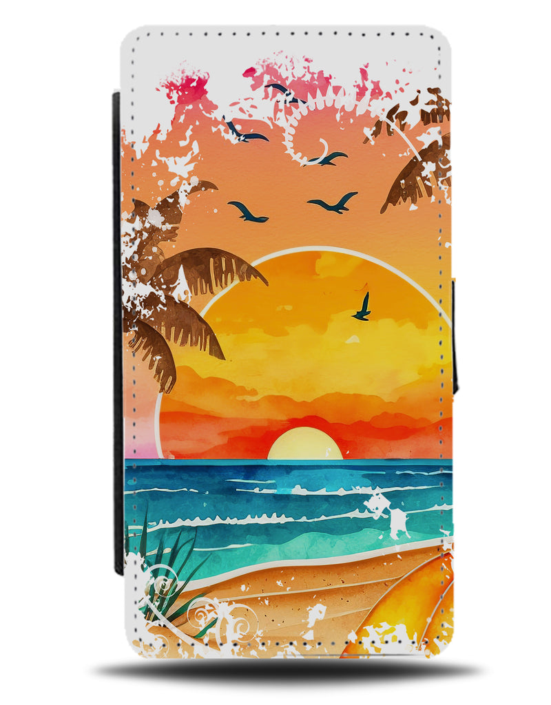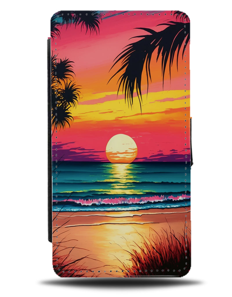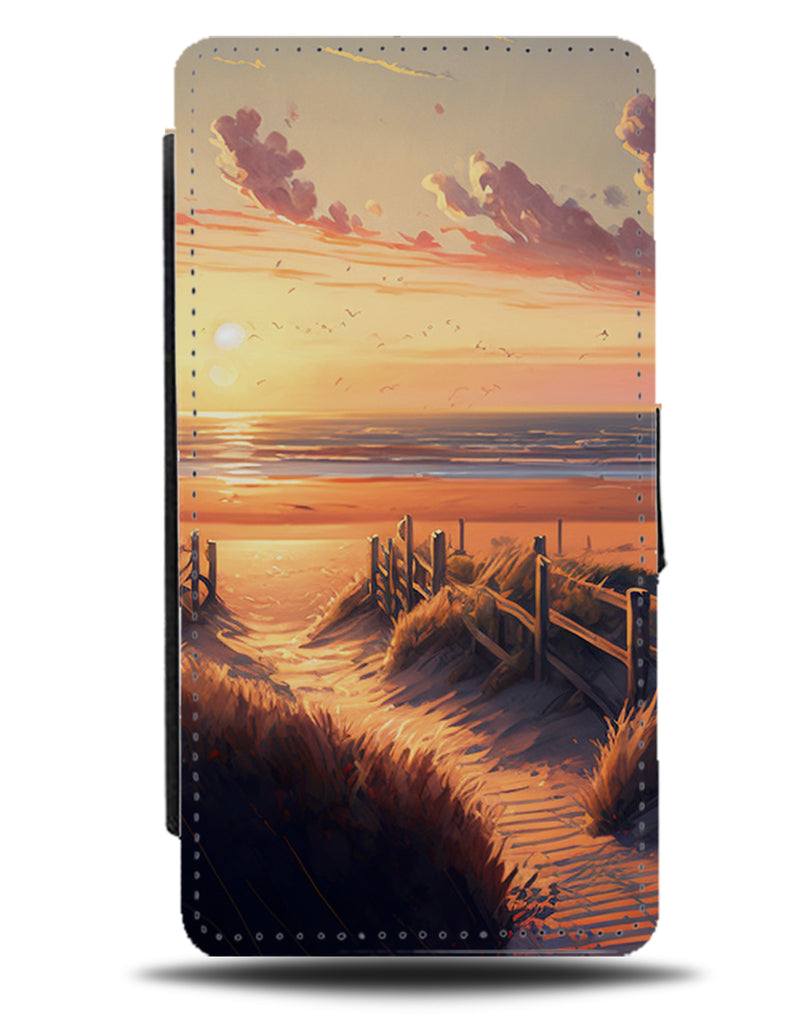 Sunset At The Beach Flip Wallet Phone Case Sunrise Sun Rise Set Beaches Painting BT30