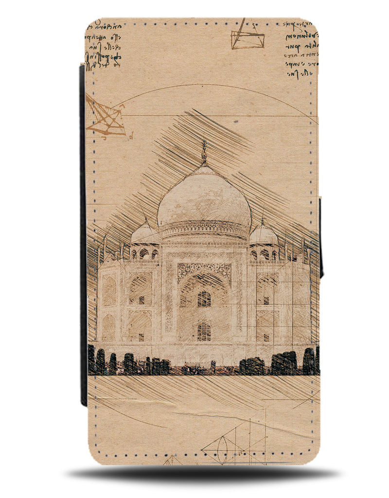 Taj Mahal Scrapbook Flip Wallet Phone Case Scrap Book Indian Drawing Sketched BU71