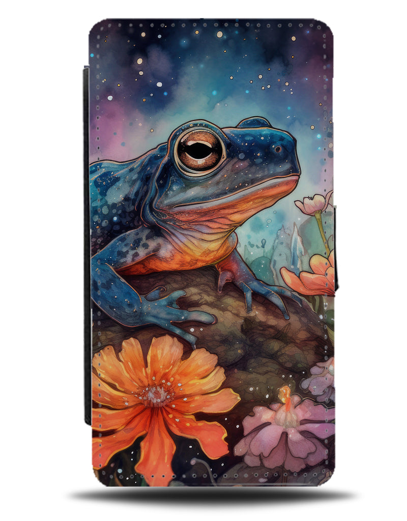 The Night Frog Flip Wallet Phone Case Frogs Froggy Toad Stars Stars Galaxy Space BW25