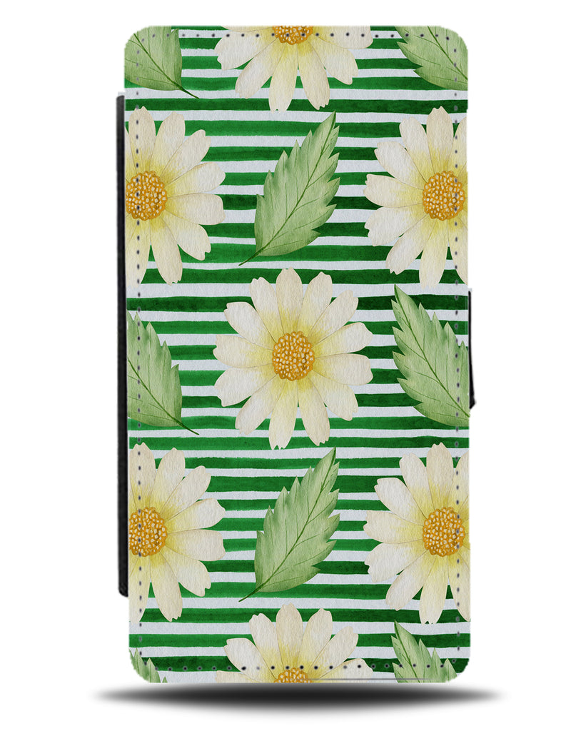 Stripey White and Green Pattern Flip Wallet Phone Case Stripes Daisys Daisie Q462H