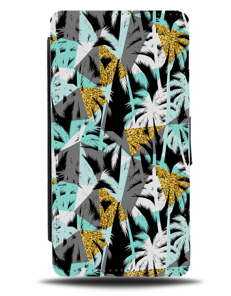 Stylish Green and Gold Palm Trees Design Flip Wallet Phone Case Tree Golden Q711F