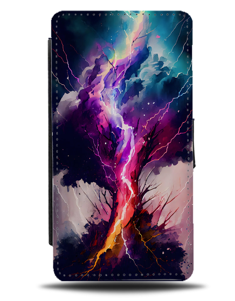 Strike Of Lightning From Sky Flip Wallet Phone Case Thunder God Colourful Storm Q783E