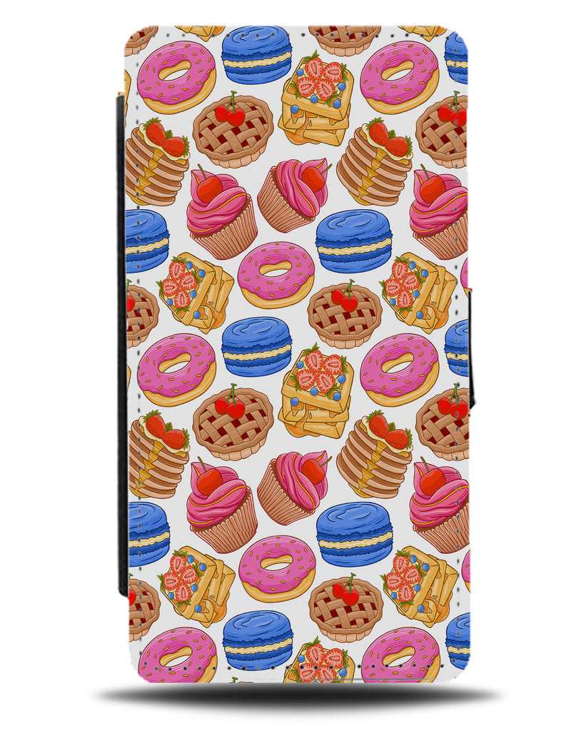 Sweets and Desserts Flip Wallet Phone Case Doughnuts Cake Cakes Strawberry Pink Q882