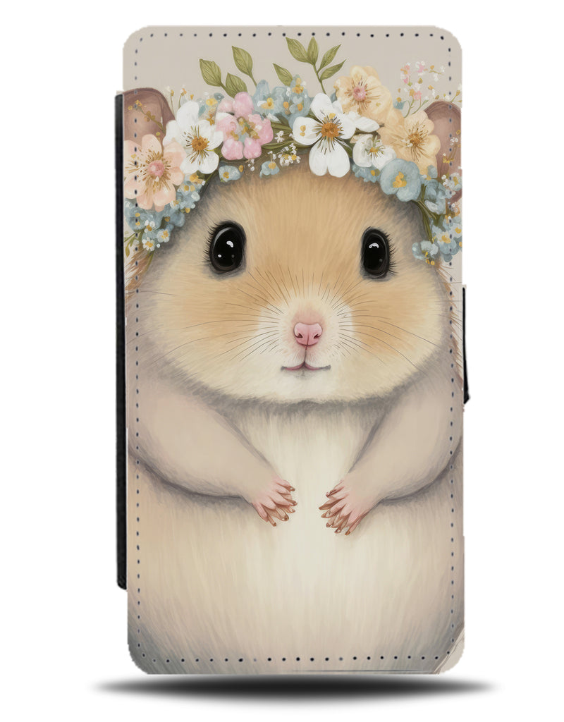 Hamster In Flower Crown Flip Wallet Phone Case Hamsters Face Watercolour Painting BJ28