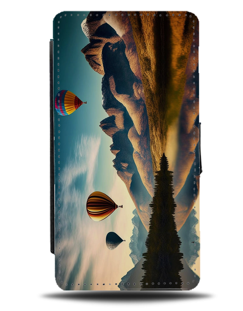 Hot Air Balloons Flip Wallet Phone Case Balloon Peaceful Mountains Landscape Sky BR90