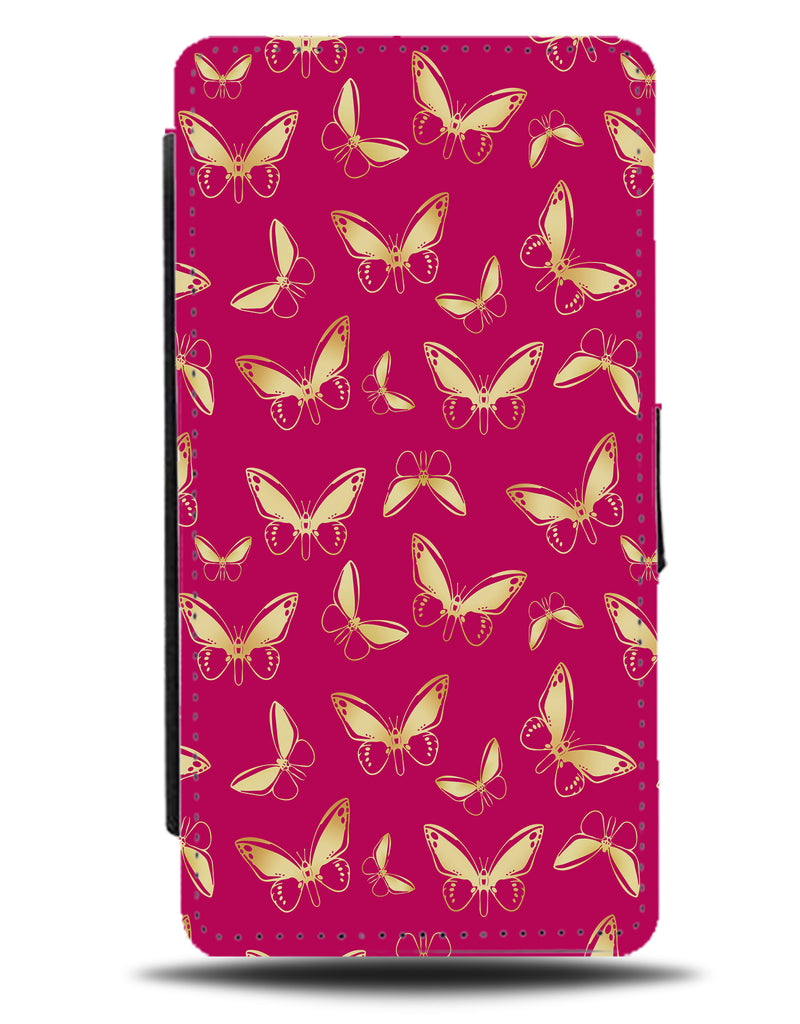 Hot Pink and Gold Butterfly Symbols Flip Wallet Phone Case Shape Shapes Symbol Q702G