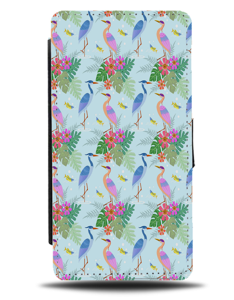 Heron Birds Flip Wallet Phone Case Herons Bird Pattern Flowers Floral Colourful Q752