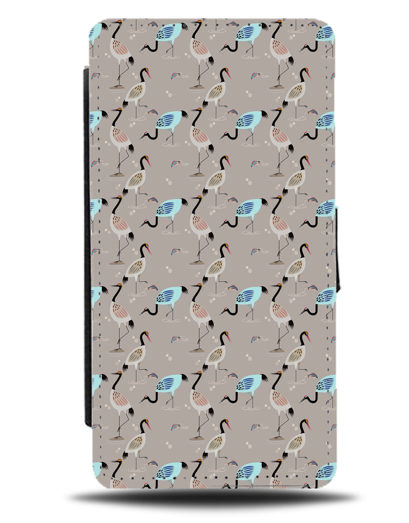 Herons In Pond Flip Wallet Phone Case Heron Birds Shapes Crane Cranes Grey Blue Q753