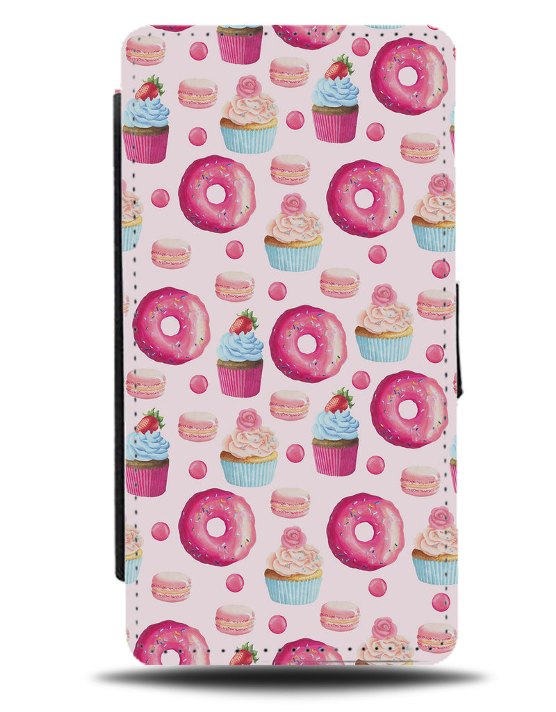 Hot Pink Coloured Deserts Flip Wallet Phone Case Desert Strawberry Doughnuts Q819A