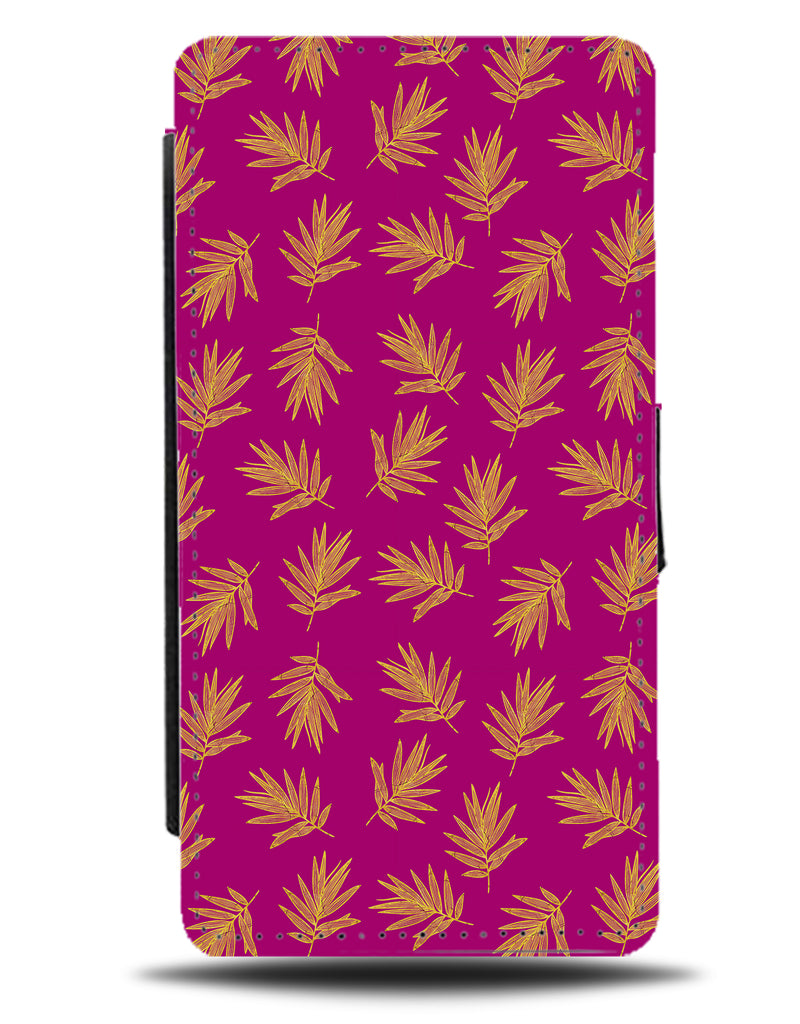 Hot Pink And Golden Tropical Leaves Flip Wallet Phone Case Leafs & Leaf Leave Q8883