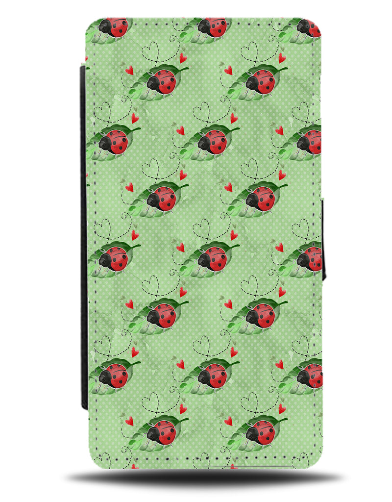 Green Ladybug Watercolour Art Pattern Flip Wallet Phone Case Ladybugs Lady Bug BH45