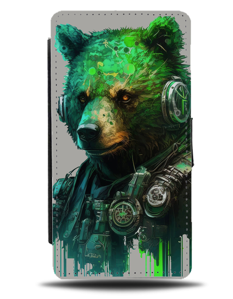 Grizzly Bear Secret Spy Flip Wallet Phone Case Cyberpunk Bears Brown Green Spies BK08