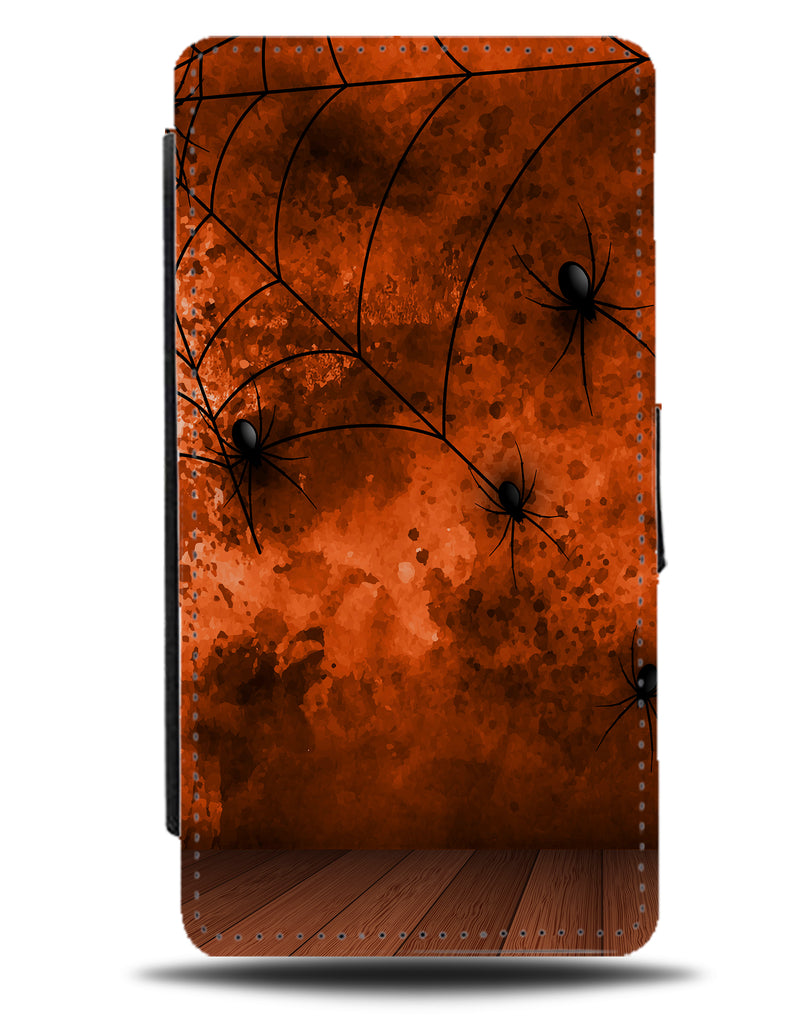 Grunge Orange Halloween Flip Wallet Phone Case Spiders Crawling On Background BL15