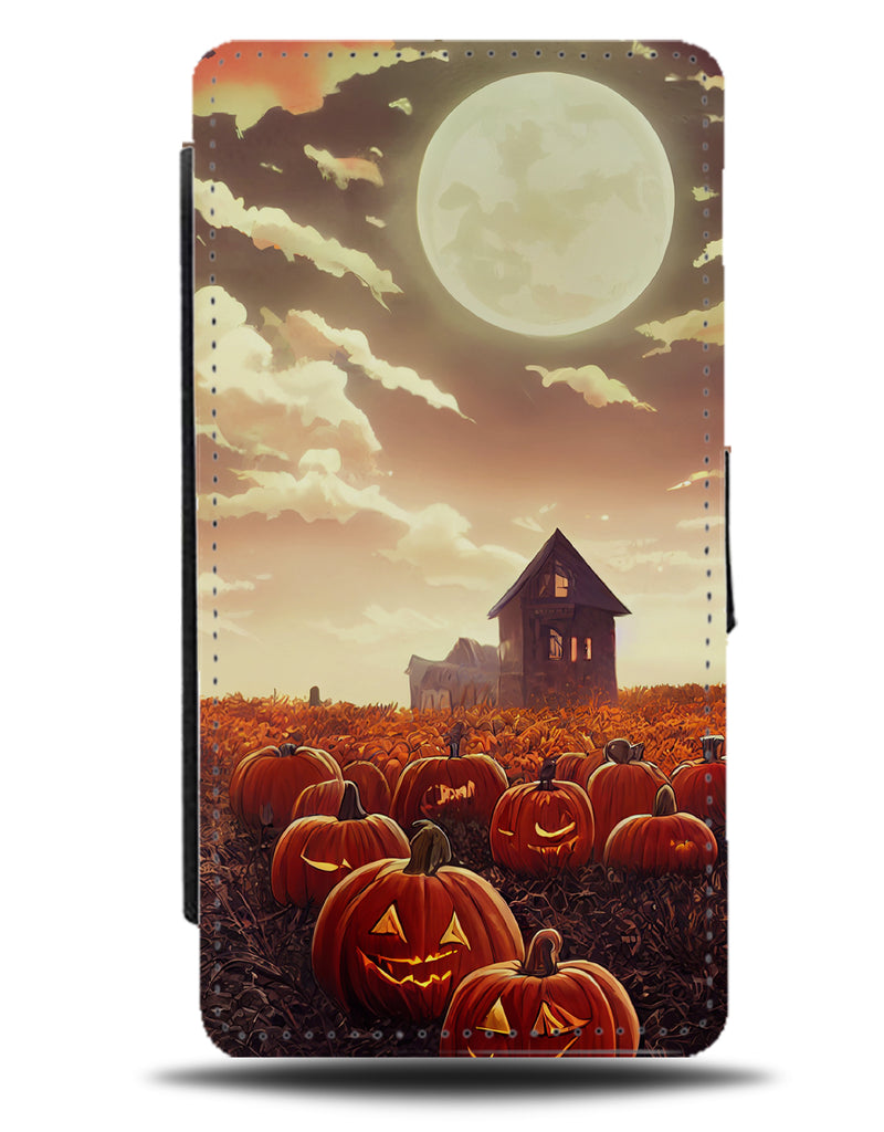 Halloween Pumpkin Field Flip Wallet Phone Case Pumpkins Picture Scene Style Look BL18