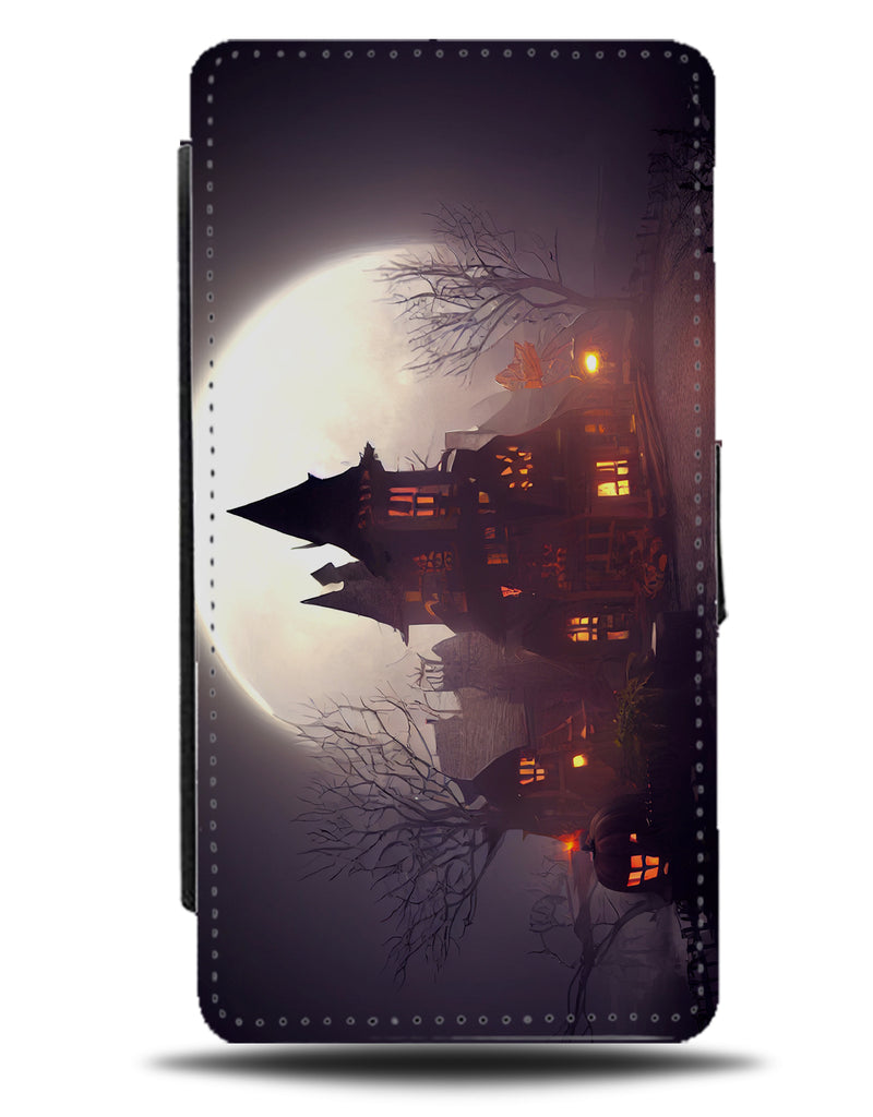Halloween Haunted Mansion Flip Wallet Phone Case House Picture Misty Full Moon BL20