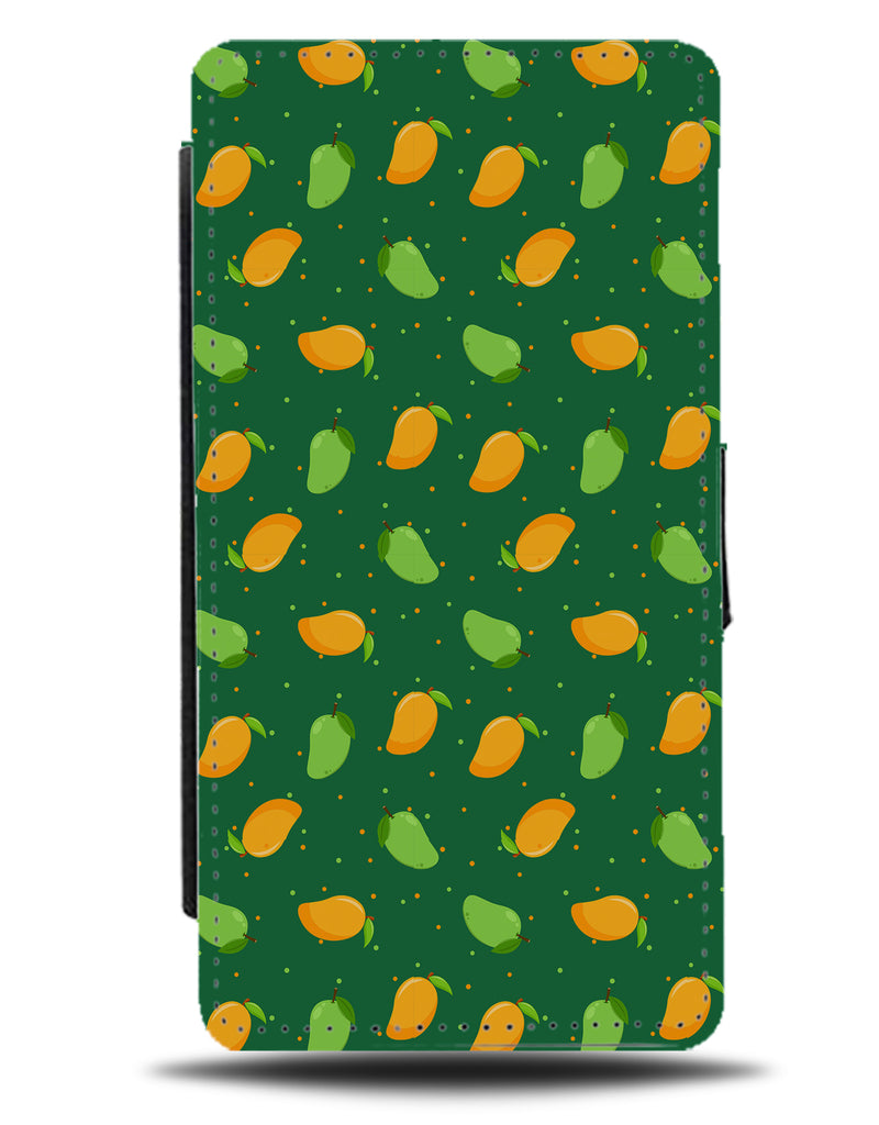 Green and Orange Mangos Flip Wallet Phone Case Falling Mango Fruit Retro Style BQ07