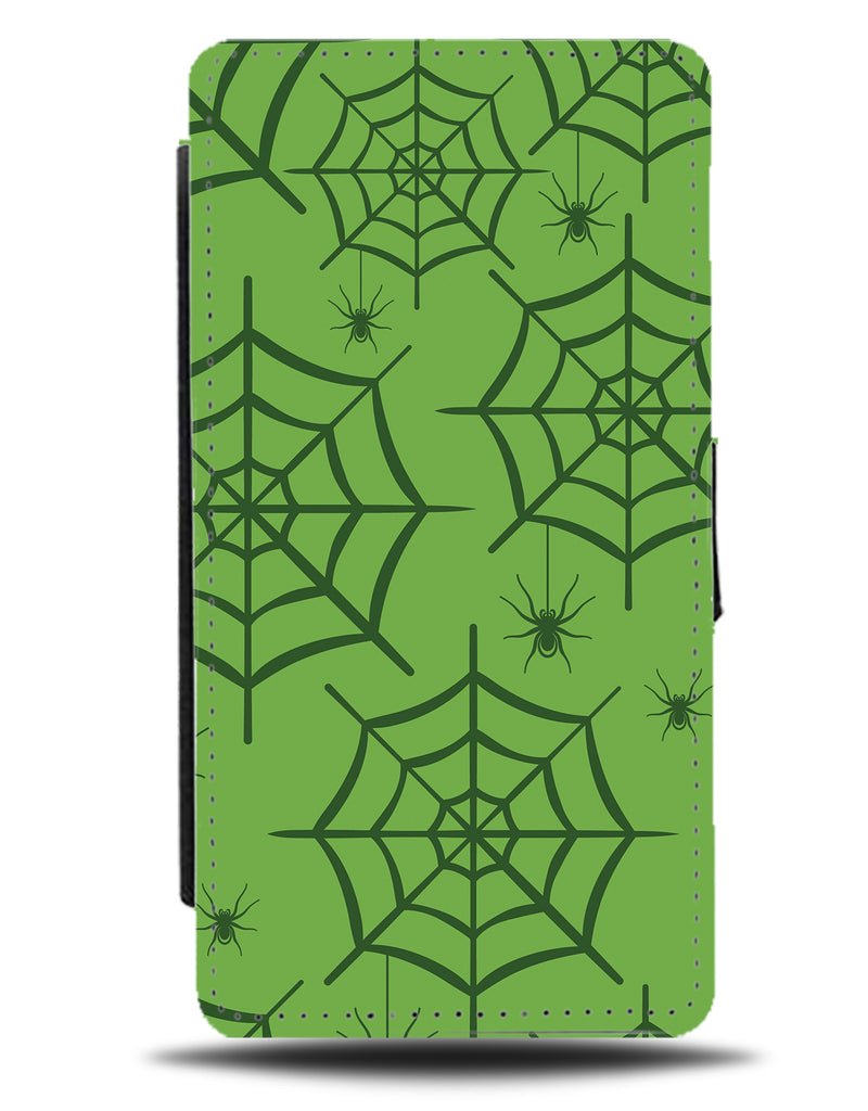 Green Spidersweb Flip Wallet Phone Case Spiderweb Spiders Web Shapes Lines Mens BU20