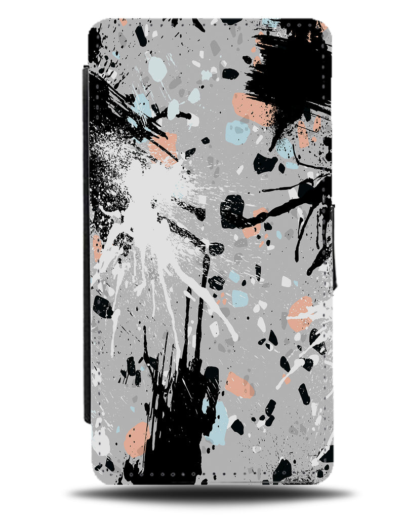 Grey Paint Splatters Flip Wallet Phone Case Splat Marks Stylish Modern Art Q453B