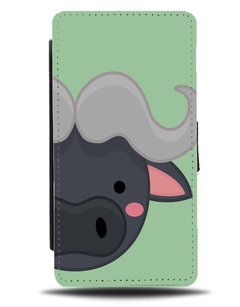 Green Water Buffalo Cartoon Flip Wallet Phone Case Head Buffalos Face Boys Bull Q484A