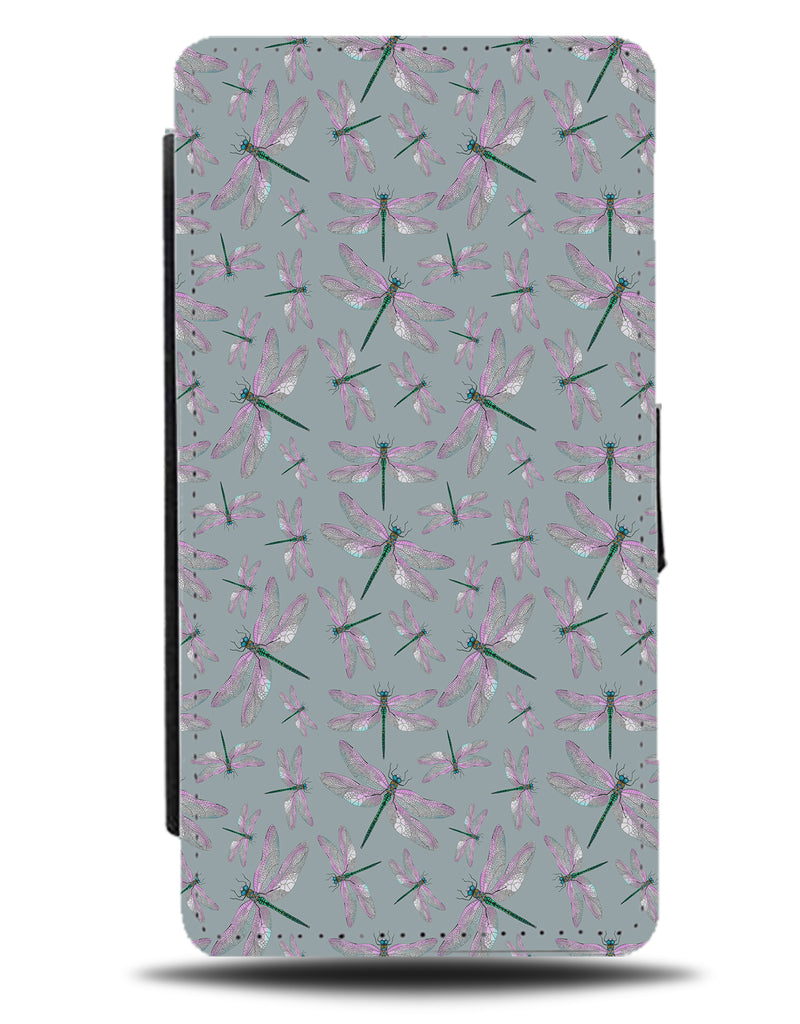 Grey and Purple Dragonfly Pattern Flip Wallet Phone Case Dragon Fly Dragonflies Q648A