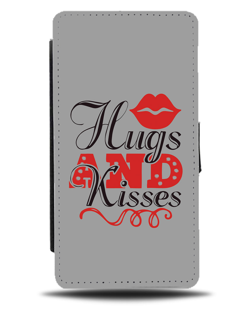 Grey and Red Hugs and Kisses Flip Wallet Phone Case XOXO Hug Kiss Lips Marks Q682