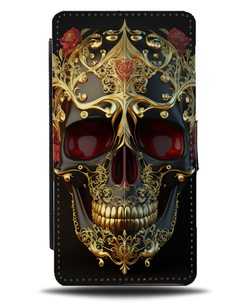 Golden Sugar Skull Picture Flip Wallet Phone Case Skulls Head Gold Coloured Goth Q704E