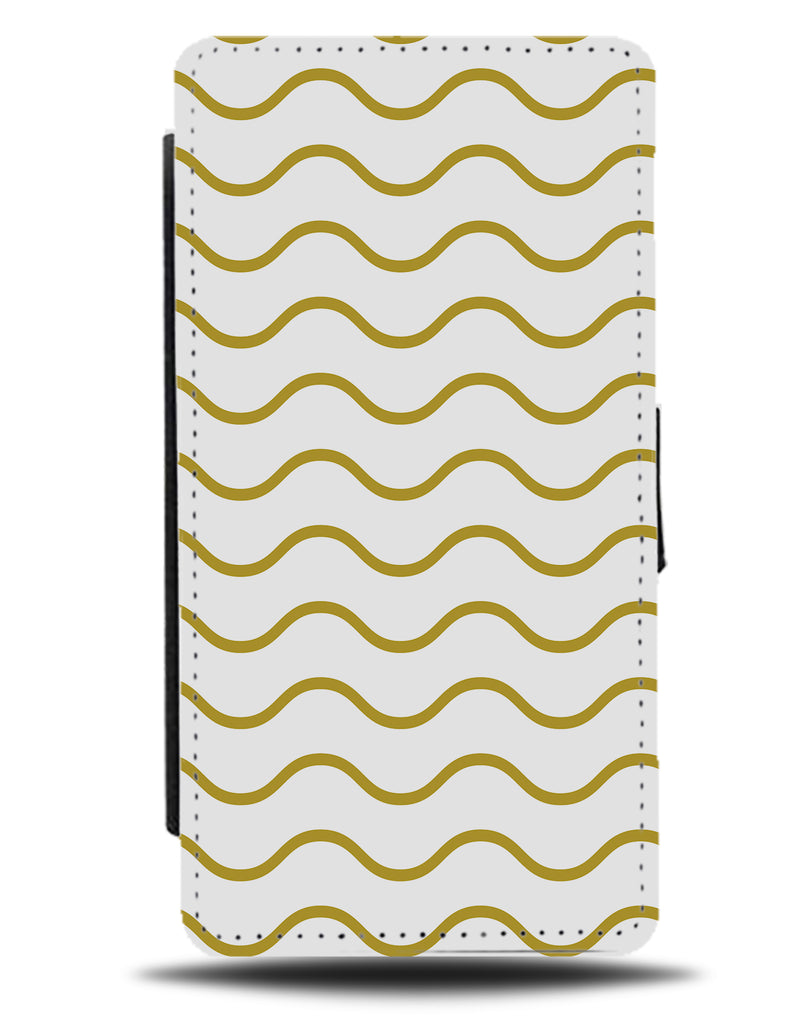 Golden Wavey Pattern Flip Wallet Phone Case Waves Lines Line White Gold Curvy Q863G