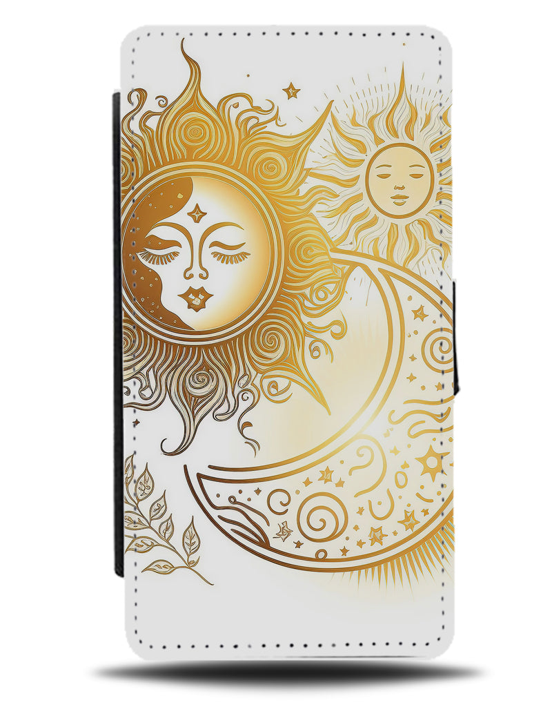 Golden Sun and Moon Flip Wallet Phone Case Moons Suns Shape Half Astrology Stars Q877A